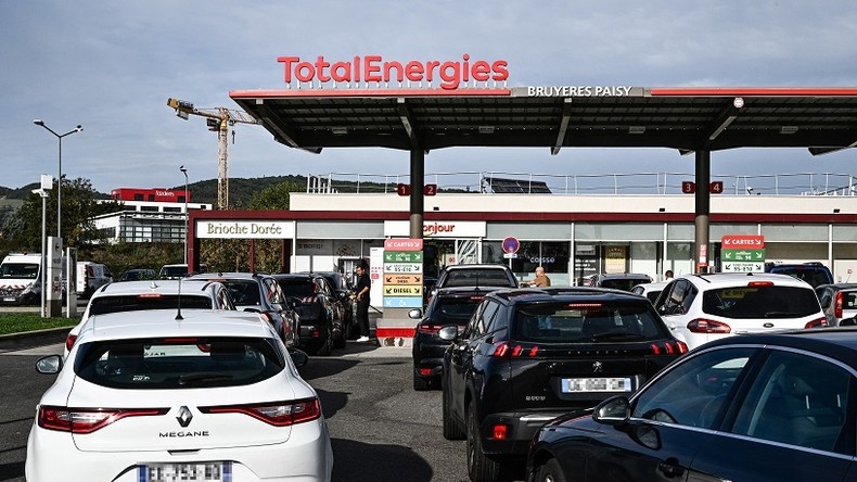 Une file d'attente d'automobilistes dans une station-service proche de Lyon, le 10 octobre 2022 (illustration).