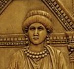 Et Placidia ? Comme je l'ai dit, nous n'avons pas de portrait d'elle. On pourrait essayer de se faire une idée de ce à quoi elle ressemblait d'après le portrait de Serena, sa cousine. Elle est montrée presque aussi grande que son mari, Stilicho, et comme une belle et imposante dame - elle devait avoir une quarantaine d'années quand ce portrait a été fait. Elle porte un collier lourd qui ressemble à des perles. Vous savez, il y a une légende qui dit que Serena a été maudite quand elle a pris un collier d'une statue de la déesse Rhea Sylvia - c'est peut-être juste ce collier. En fait, toute la famille de Stilicho semble avoir été maudite ; lui et sa femme sont tous deux morts de mort violente, y compris leur fils, Eucherius. Mais c'est une autre histoire ; disons que le portrait de Serena nous dit, au moins, comment Placidia s'habillait dans les occasions formelles ; un vêtement élaboré qui s'appelait une « Palla ».