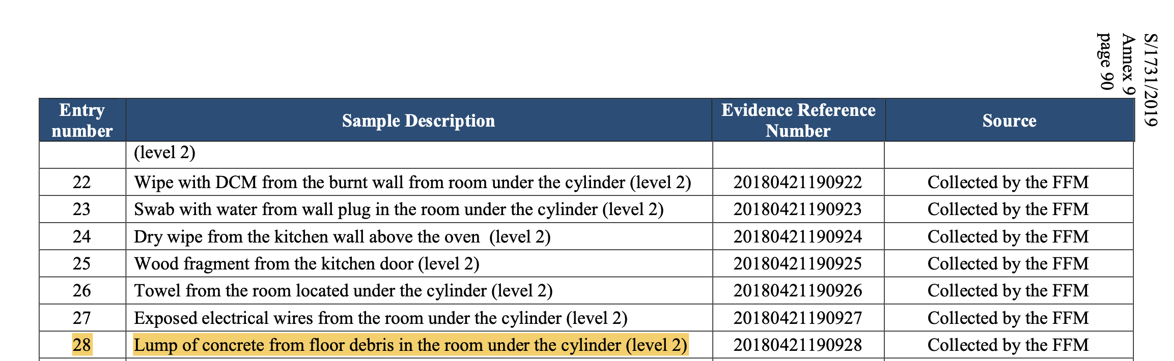 The sample now said to contain the incriminating TeCP is conspicuously absent in the OPCW's March 2019 final report on Douma. A full list in that report of the "samples collected or received by the Fact-Finding Mission" makes no mention of the IIT's newfound sample.