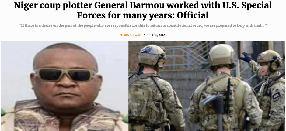 Comme l'a reconnu de manière implicite la vice-secrétaire d'État américaine Nuland, le général A. Tiani et le général de brigade Barmou sont tous deux des « Amis de l'Amérique » en raison de leur profil militaire et de leurs antécédents.
