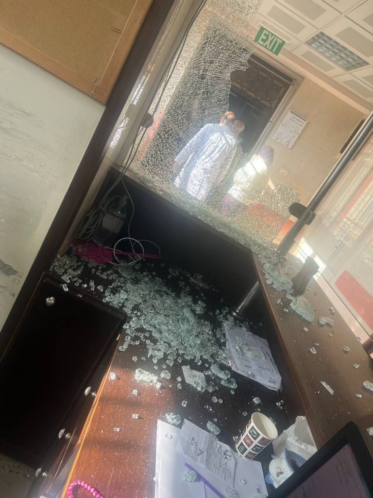 L'occupant a fouillé les lits des patients de l'hôpital, et la recherche se déroule actuellement au premier étage, et maltraité les soignants qu'elle a arrêtés pour les interroger.