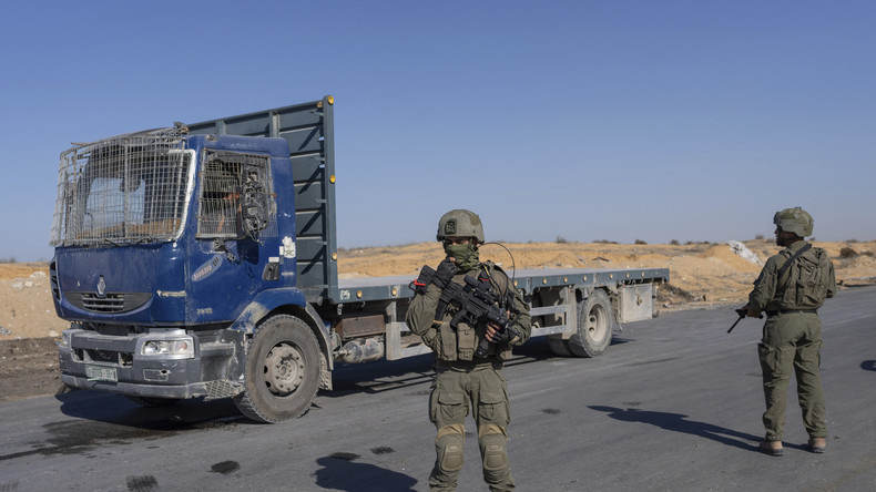 Soldats israéliens contrôlant les convois humanitaires dans la bande de Gaza.