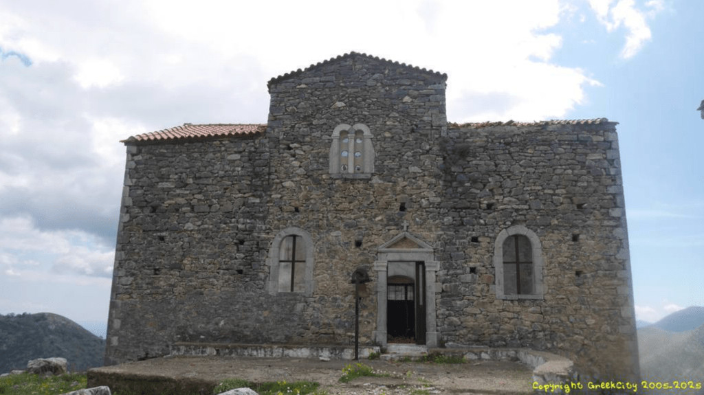 Chemin faisant donc sur de petites routes étroites à peine goudronnées, nous voilà à Polyáravos, alors village de jadis, bâti sur une colline à une altitude de 840 mètres, au pied du mont Zíziali, dont le col qui culmine à 1466 mètres, appartient à la chaîne de montagnes du Taygète, au sud de Sparte.