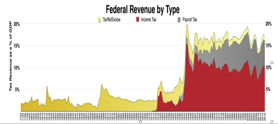 Trump and the Republicans have put one political aim above all others: cutting taxes, above all progressive taxation that falls mainly on the highest incomes and personal wealth. It seems that at some point Trump must have asked some economist whether there was any alternative way for governments to finance themselves. Someone must have informed him that from American independence through the eve of World War I, by far the dominant form of government revenue was customs revenue from tariffs.