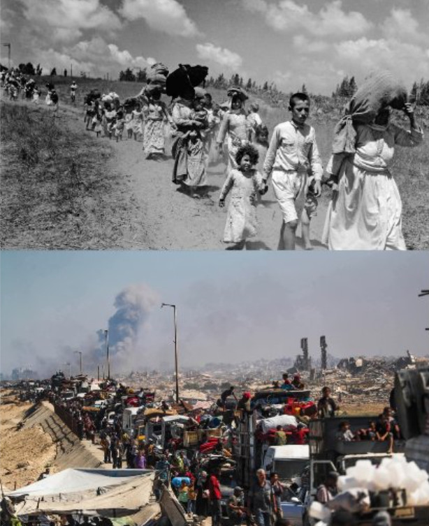 Cette approche s'inspire d'un plan ancien, mis en œuvre lors de la création violente d'Israël en 1948. Les Palestiniens autochtones furent expulsés de force de leurs villes et villages de ce qui était alors la Palestine et repoussés vers les pays voisins. Soutenu par ses alliés occidentaux, l'État israélien établi sur des terres palestiniennes volées a ensuite procédé à la destruction de chaque maison dans des centaines de villages palestiniens.