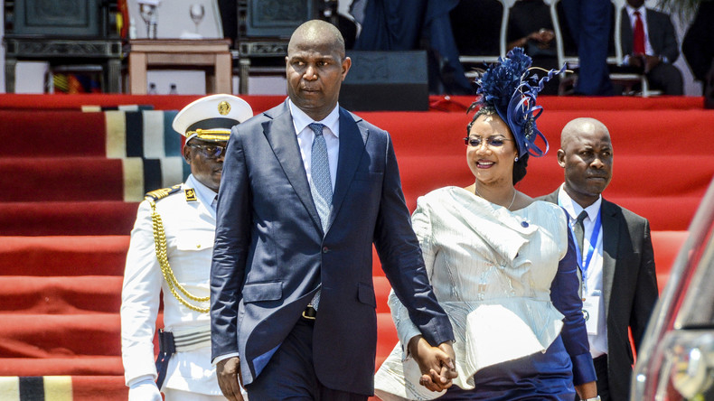 Le président du Mozambique, Daniel Chapo, aux côtés de son épouse lors de son investiture à Maputo, le 15 janvier 2025