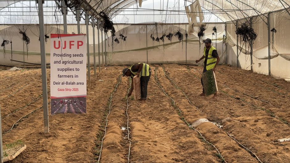 L'initiative de labourage et de préparation des terres en août dernier n'était pas la première. Elle avait été précédée par plusieurs autres actions importantes menées par les équipes de l'Ujfp, qui eurent un impact considérable sur la revitalisation du secteur agricole. Ces équipes avaient réparé les serres détruites par la guerre, permettant ainsi aux agriculteurs de les réutiliser pour cultiver des récoltes utiles à la population. Elles avaient également fourni des intrants agricoles essentiels, semences, engrais, outils réduisant ainsi la charge financière des agriculteurs qui n'avaient plus les moyens de se les procurer. De plus, des projets de construction de canalisations avaient été réalisés pour acheminer l'eau vers des terres asséchées et privées d'irrigation, redonnant vie à de larges superficies. Ces actions de base ont constitué la pierre angulaire de l'initiative de labourage, puis de la distribution de plants, toutes intégrées dans une vision cohérente visant à faire renaître l'agriculture à partir de ses racines.