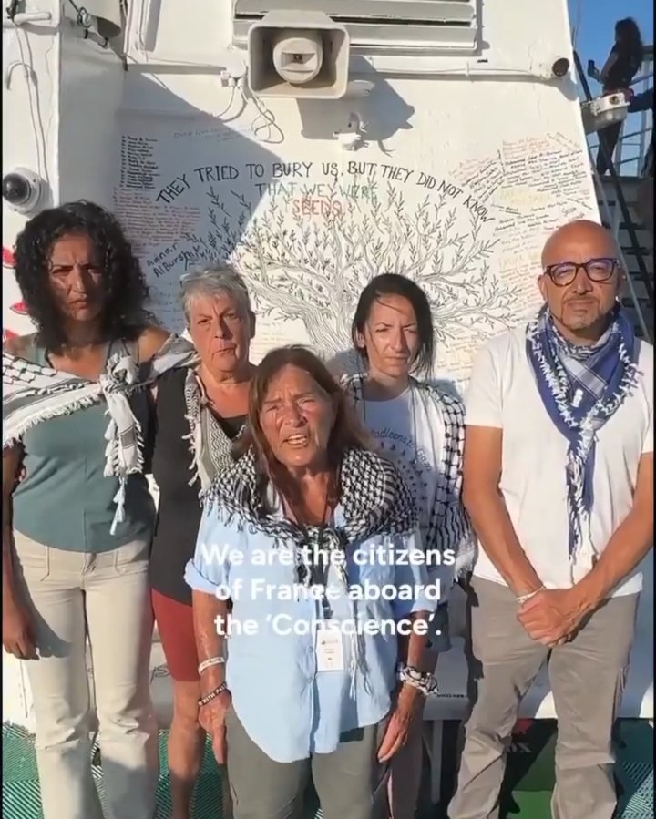Message des membres français de l'équipage du bateau conscience arrêté cette nuit par l'armée israélienne