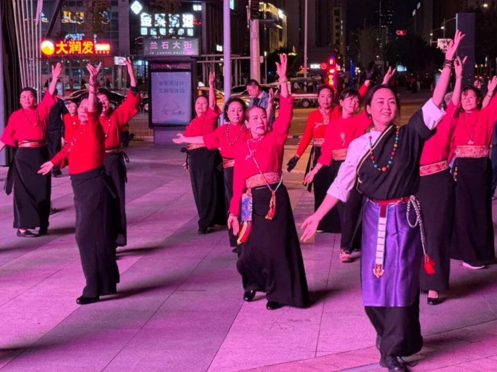 Lanzhou. Centre-ville : danse dans les rues.