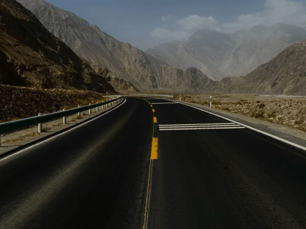 Nous avons continué notre route via le Karakoram, un corridor de connexion à deux voies très fréquenté, premier tronçon du Corridor économique Chine-Pakistan (CPEC), en passant devant la beauté éblouissante des glaciers, des sommets et des lacs d'un bleu profond, jusqu'aux terres du Pamir et à la ville tadjike en plein essor de Tashkurgan, située en haute altitude ; plus loin se trouvent le col de Khunjerab et la frontière sino-pakistanaise, jusqu'en Asie du Sud.