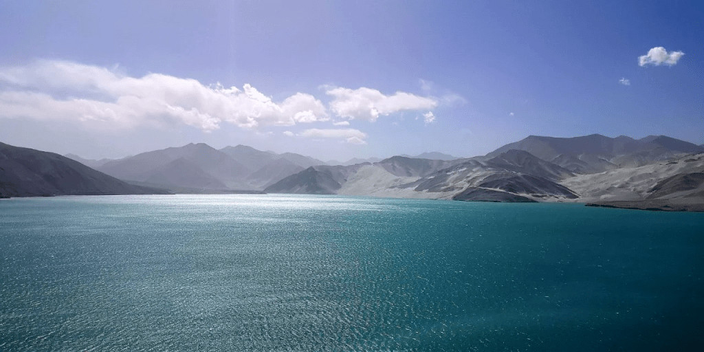 Xinjiang. Route du Karakoram. Corridor de connectivité BRI/CPEC. Lac Sable Blanc - en route