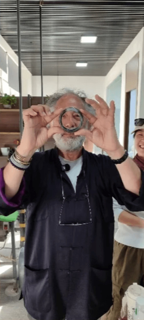 Yutian. Carl Zha : [Pepe] tient un bracelet en jade de Hotan