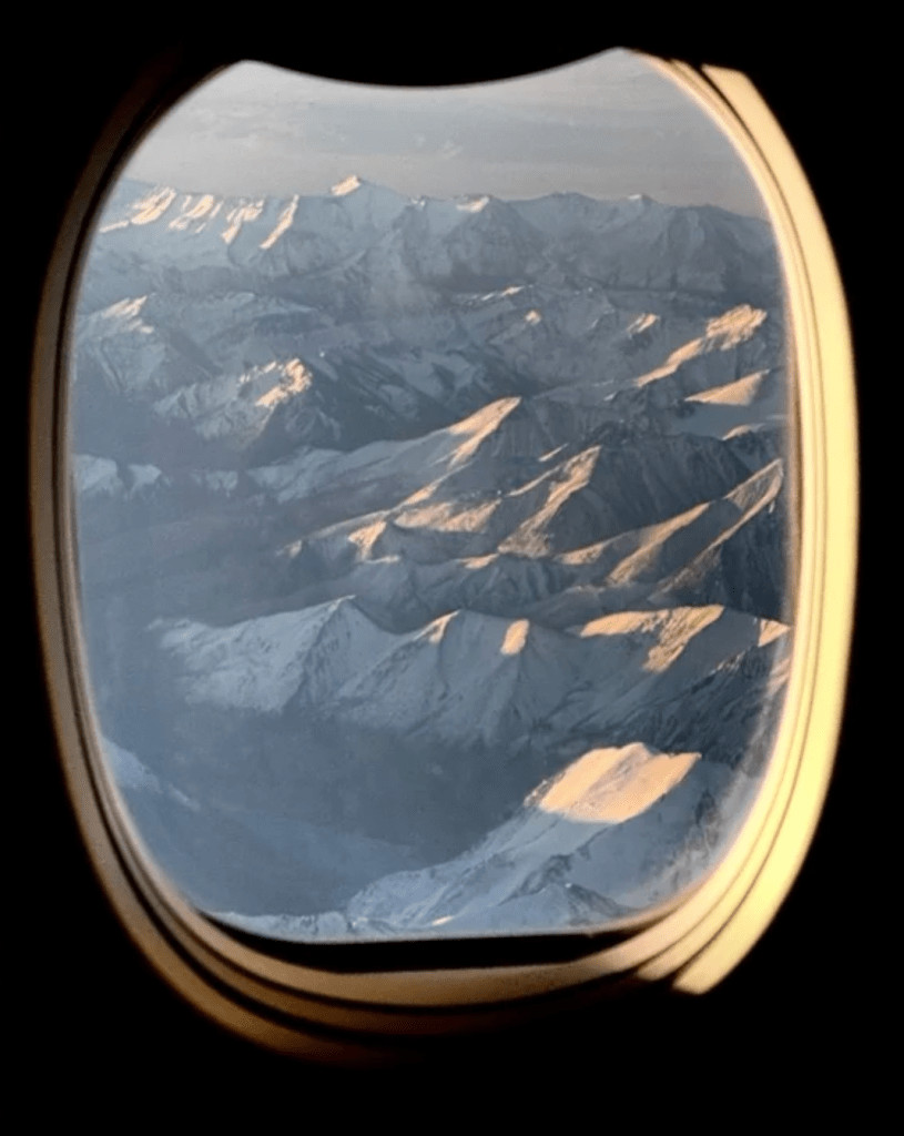 Xinjiang. Survol des montagnes du Tian Shan.