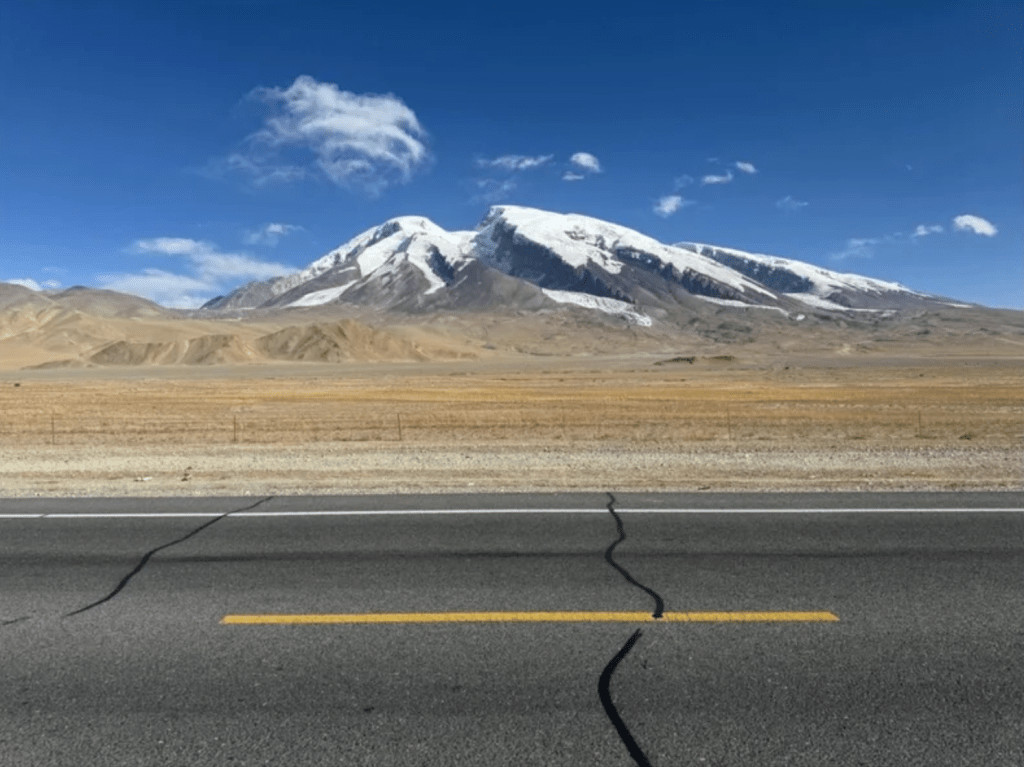 Le Xinjiang rencontre les terres du Pamir. Le Muztagh Ata bénit la route du Karakoram.