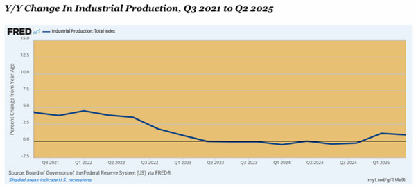 And we do mean a near halt. Industrial production, for instance, has been essentially flatlining since Q2 2023.