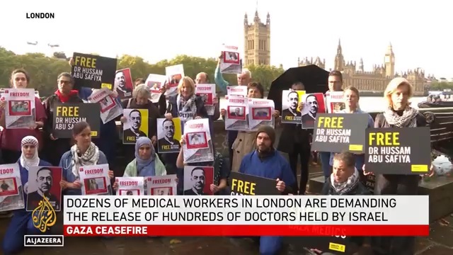 Des médecins et des professionnels de la santé se sont rassemblés à Londres pour exiger la libération de centaines de médecins palestiniens actuellement détenus sans inculpation ni jugement dans les prisons israéliennes.