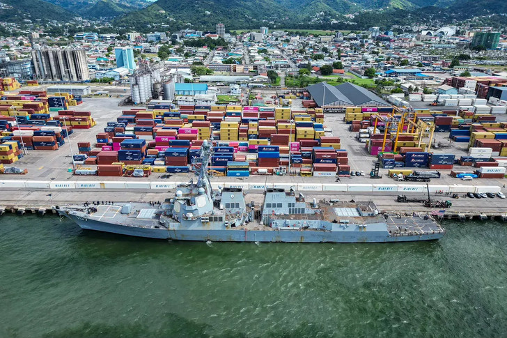 ❖ Un navire de guerre américain, l'USS Gravely, a accosté dimanche au port de Port of Spain, à Trinité-et-Tobago, alors que l'administration Trump intensifie ses pressions militaires sur le Venezuela. Ce déploiement, qui comprend le porte-avions USS Gerald R. Ford, a suscité les critiques du président Nicolás Maduro, tandis que les responsables américains et trinidadiens l'ont présenté comme un entraînement conjoint contre la criminalité transnationale et des missions humanitaires.