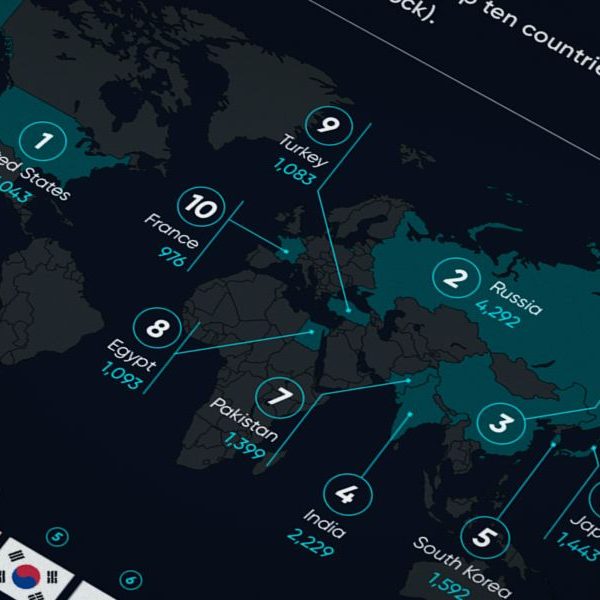 This infographic shows the top ten countries of the world by their air power (total aircraft in stock)