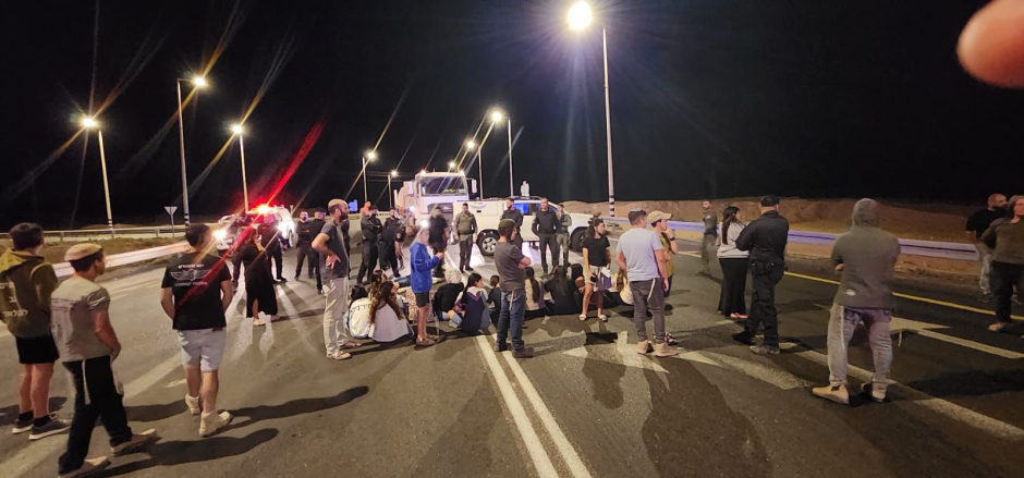Novembre 2025. Des Israéliens aident leur Etat à affamer les Palestiniens à Gaza en bloquant les quelques camions autorisés à entrer. ( source)