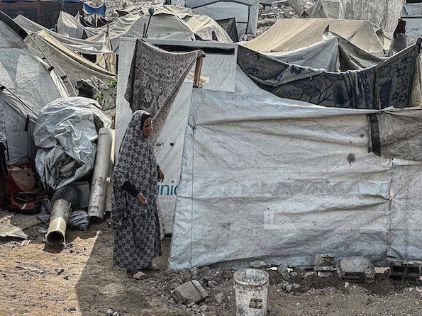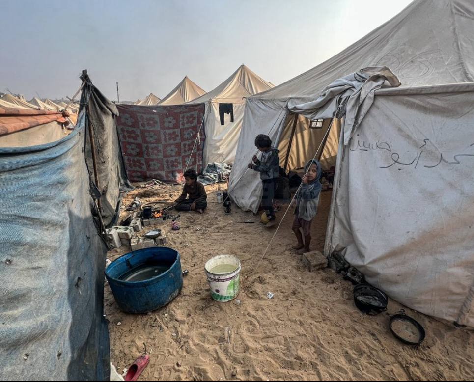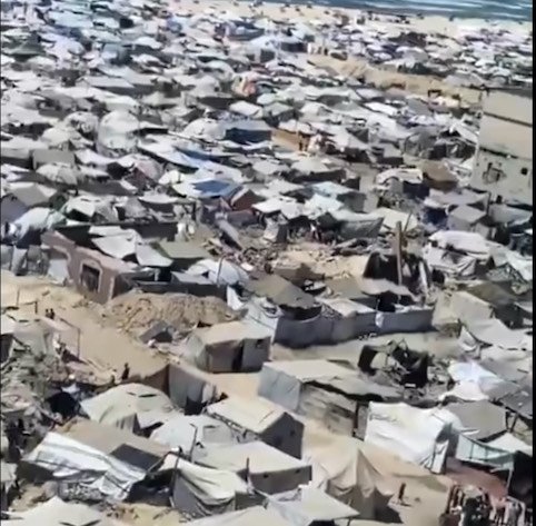 Des images aériennes d'un des nombreux camps de déplacés à Gaza : un rappel poignant que la quasi-totalité de la population reste sans abri, malgré le cessez-le-feu en vigueur.