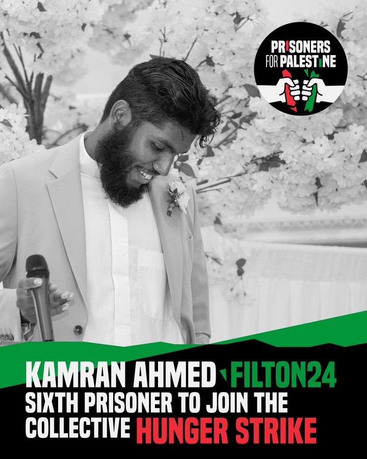 Kamran Ahmed est depuis le début de la semaine le 6ème militant britannique à entrer en grève de la faim illimitée, depuis la prison britannique où il est enfermé pour son soutien au peuple palestinien.