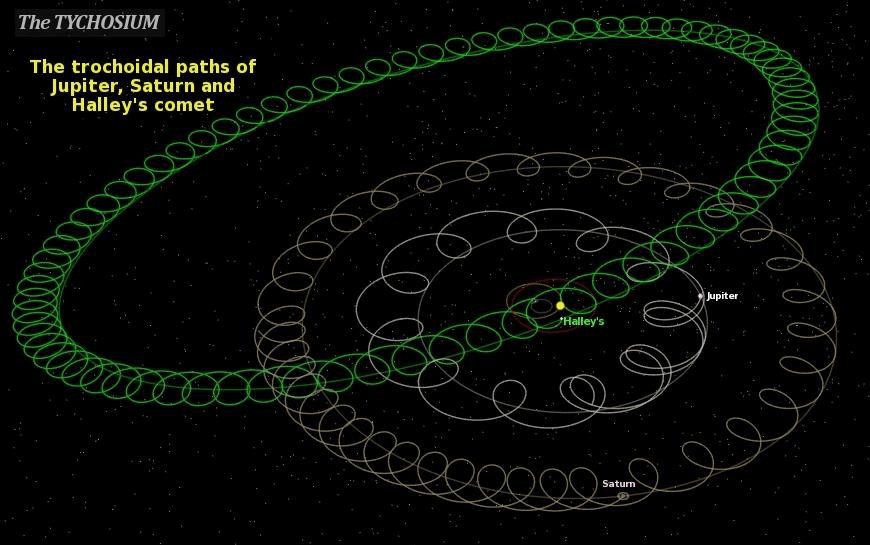 La révélation stupéfiante : Les fameuses «comètes de Newton», «comète de Morehouse», «comète Apianus», «comète Machholz» et tant d'autres n'étaient en réalité que des observations précoces ou tardives de la comète de Halley elle-même, lors de sa trajectoire trochoïdale autour de notre système solaire.
