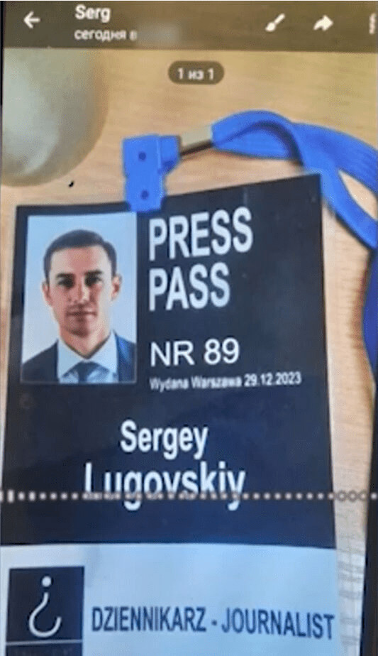 Ce qu'il cherche en réalité, c'est un pilote ou un navigateur de l'armée de l'air russe prêt à voler un Mig-31 en échange de beaucoup d'argent, et d'un passeport occidental. Il envoie même une photo d'un badge presse à son nom avec le logo de Bellingcat clairement visible dessus pour prouver qui il est. Mais les soldats russes comprennent bien de quoi il s'agit et avertissent immédiatement les services secrets (FSB) qui décident de piéger les services secrets ukrainiens, et manifestement britanniques (les liens entre Bellingcat et le MI6 sont avérés et prouvés depuis longtemps), qui sont derrière cette tentative de détournement.