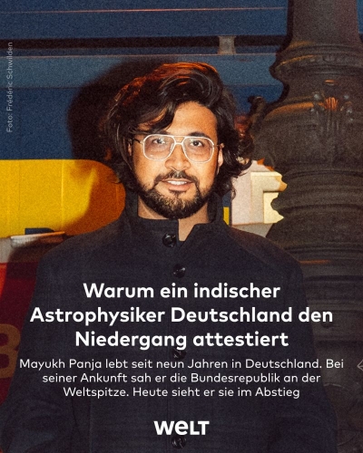 « En 2016, je suis venu en Allemagne pour commencer mon doctorat. À l'époque, l'Allemagne était un bastion de la science et de la technologie. Et aujourd'hui, en l'espace de seulement 9 années, j'ai eu l'incroyable opportunité de voir comment un pays du Premier Monde, qui était en passe de devenir une puissance mondiale, s'est systématiquement détruit par une série de mauvaises décisions politiques, qui avaient toutes pour but de l'affaiblir. Toutes ces mesures et décisions autodestructrices ont un point commun : elles ont toutes été prises par une poignée de millenials aisés des grandes villes, des millenials qui se sentent moralement supérieurs et qui voudraient en fait être félicités pour leur « bonne conduite ». Il est fou de voir comment le narcissisme de quelques individus peut détruire tout un pays. D'une certaine manière, je compatis particulièrement avec les Allemands travailleurs et ambitieux, surtout ceux qui ont travaillé dur pour construire le pays et qui doivent maintenant le voir ruiné par une bande de salauds suffisants et arrogants », déclare Mayukh Panja, astrophysicien, sur X le 26 octobre 2025.