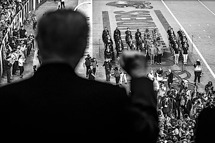 Le président Donald Trump pendant une cérémonie avant le Veterans Day au Northwest Stadium de Landover, dans le Maryland, dimanche. (Maison Blanche/ © Daniel Torok)
