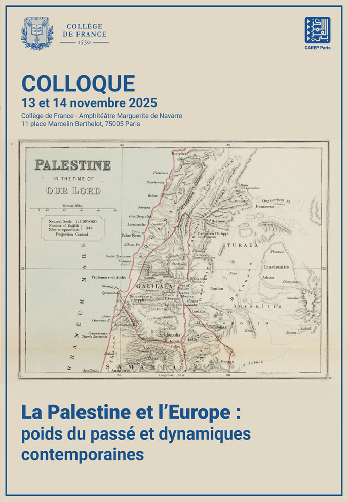 Colloque : la Palestine et l'Europe, poids du passé et dynamiques contemporaines. Retransmission de l'intégralité des échanges sur la chaîne du CAREP (Centre Arabe de Recherches et d'Études Politiques de Paris)