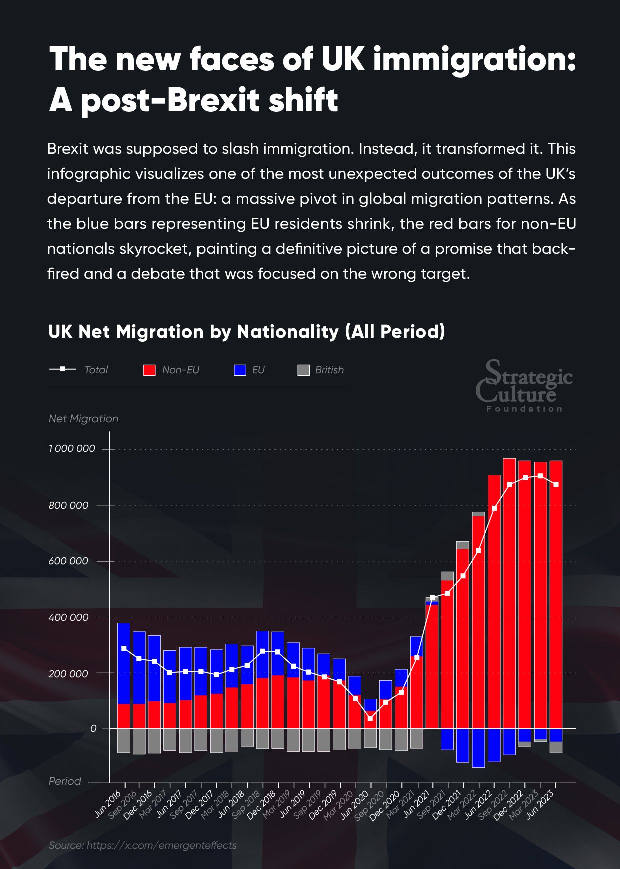 Brexit was supposed to slash immigration. Instead, it transformed it. This infographic visualizes one of the most unexpected outcomes of the UK's departure from the EU: a massive pivot in global migration patterns. As the blue bars representing EU residents shrink, the red bars for non-EU nationals skyrocket, painting a definitive picture of a promise that backfired and a debate that was focused on the wrong target.