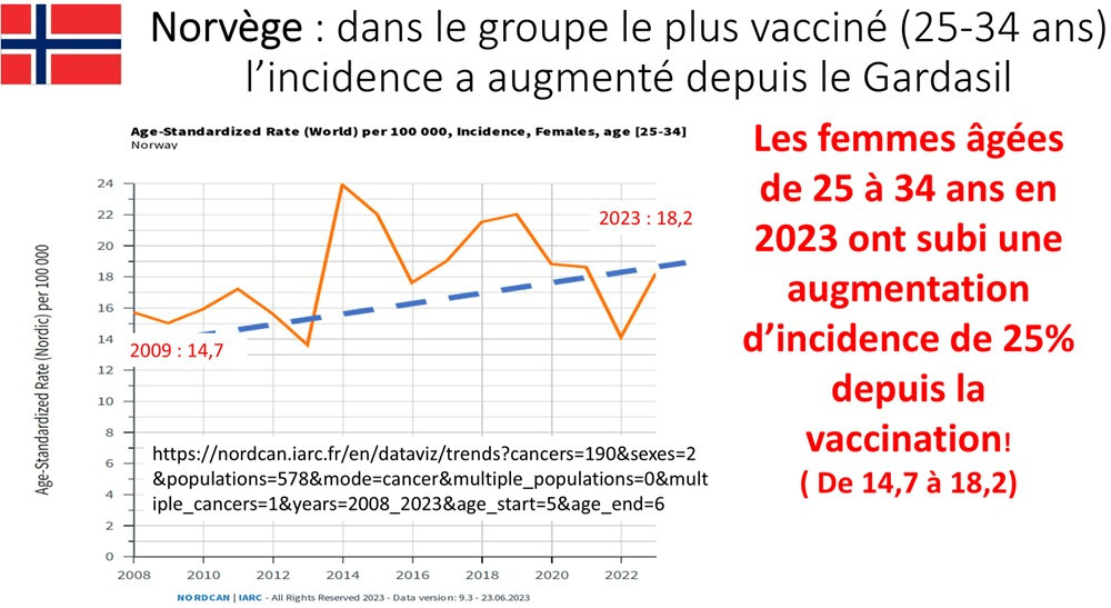 L'inefficacité du Gardasil à prévenir le cancer invasif du col de l'utérus a aussi été observée en Norvège :