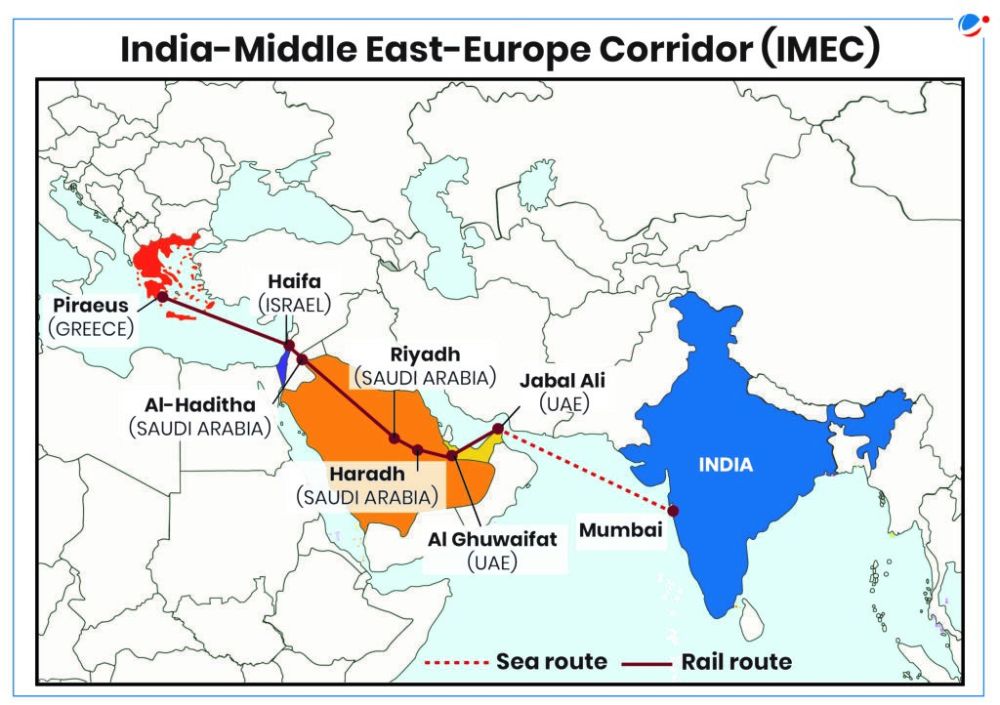 The Abraham Accords for Israel ideally would have resulted in normalization and Israel proceeding as the primary hub of goods from India, oil and natural gas exports from the Mid-East region, destined for Europe as part of the IMEC project. But the Saudis are not on board with normalization unless Israel 'gives up' Gaza, so IMEC will not work unless Netanyahu adheres to the 20 point plan. Both Israel and Saudi Arabia want IMEC, but only the Saudis are geographically contingent. Israel's role certainly comports with India's relationship: it is desirable for India yet is not fundamental if it comes down to bypassing obstacles obstructing Indian goods from reaching Europe.