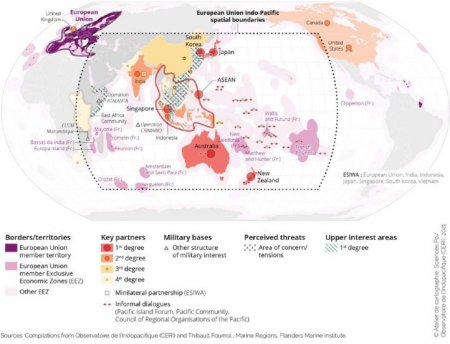 Cela ne signifie pas que l'Union ait perdu toute sa puissance. Contrairement au déclin relatif de la puissance physique, sa force commerciale, normative et réglementaire lui permet de demeurer un acteur majeur, à la pointe du commerce mondial et des normes environnementales et sociales, ce qui peut être interprété comme une autre forme de puissance non conventionnelle. Mais, sans aucun doute, ce type d'arguments est considéré comme valable dans un contexte international ouvert et multilatéral, deux éléments qui ont perdu du terrain ces dernières décennies par rapport à la puissance militaire (15). Dès lors, ils cessent d'être pertinents dans un monde de sphères d'influence rivales. Et bien que les cartes la placent encore au centre du monde, la réalité est que l'on observe des phénomènes de plus en plus divers qui témoignent d'un cycle changeant où l'Atlantique n'est plus une scène dominante, laissant un vide que l'Indo-Pacifique comble désormais. Une région qui représente 60 % du PIB mondial, 65 % de la population totale et une série de scénarios de confrontation conflictuels qui éclipsent complètement les avantages ? du théâtre européen, laissant derrière lui une histoire construite sur des siècles et donnant naissance à une nouvelle étape dans laquelle même l'Union a sa propre vision stratégique.