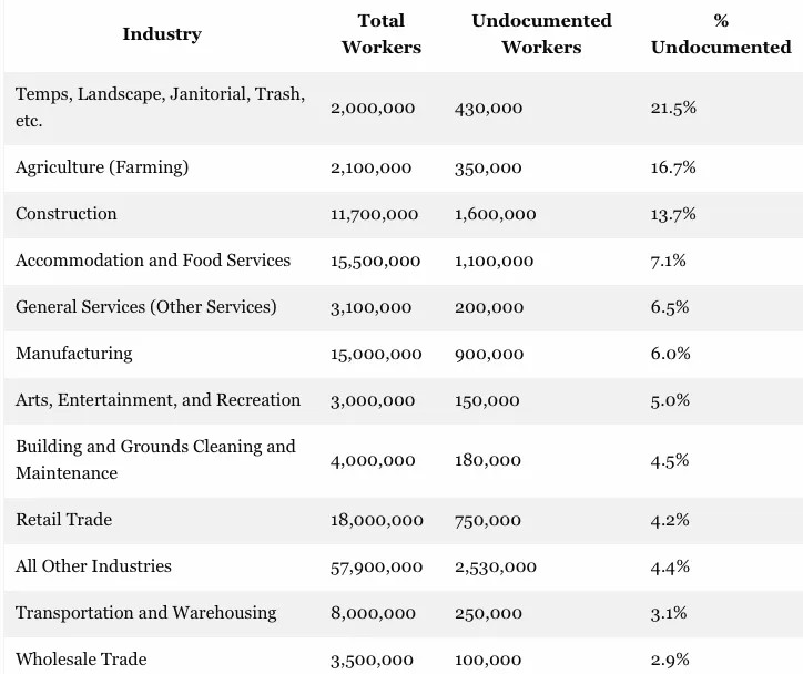 Estimated Undocumented Workers in U.S. Industries (2025)