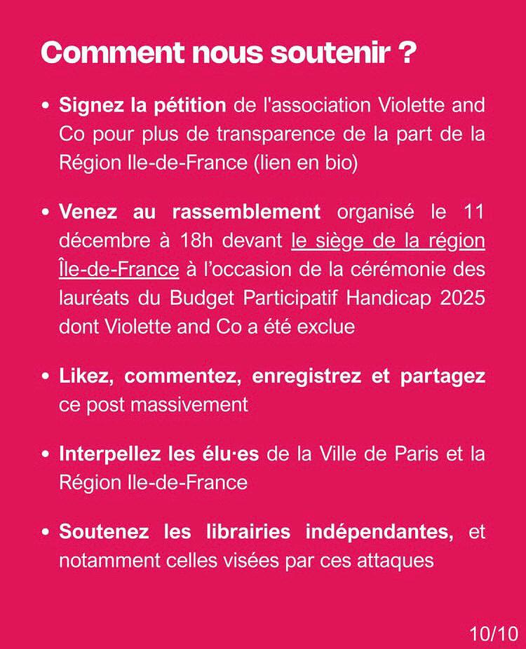 À lire, ci-dessous, le communiqué de la librairie, qui appelle à un rassemblement jeudi 11 décembre devant le siège du Conseil Régional.