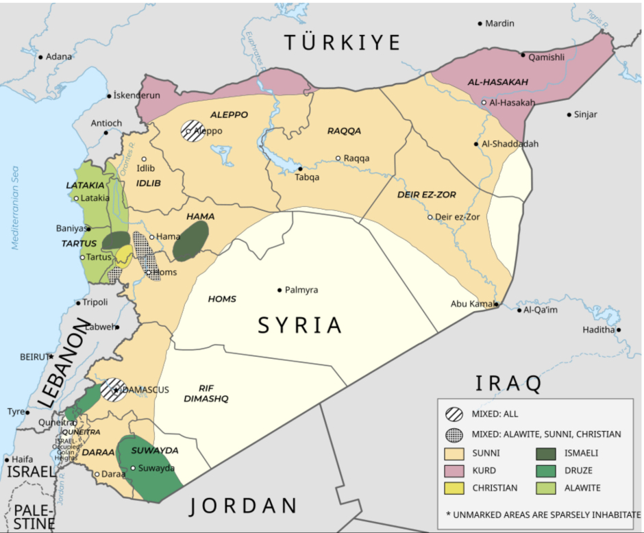 Carte ethno-religieuse de la Syrie. Carte : Tanvir Anjum Adib, Wikimedia Commons / CC BY-SA 4.0