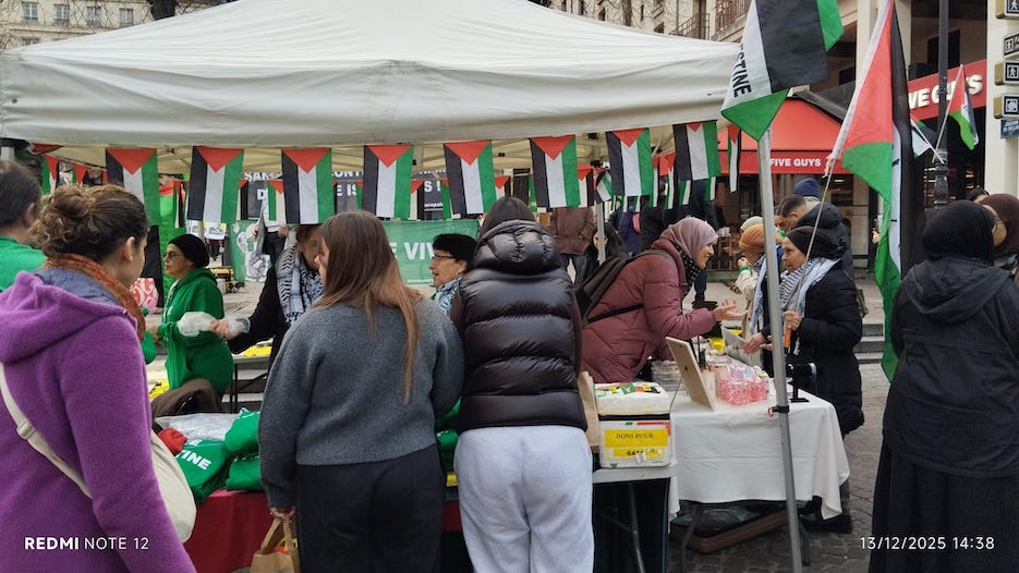 A la Fontaine des Innocents, samedi notre rassemblement a été l'occasion d'informer les passants sur la situation à Gaza, en Cisjordanie, la complicité de nos gouvernants, de nombreux médias, de la mise au pas des réseaux sociaux, mais aussi des nombreuses mobilisations et actions de résistance dans le monde.