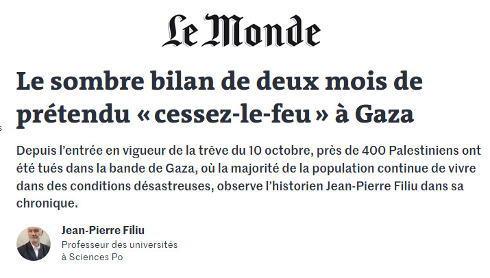 Et ces gens sont amenés à mourir, de faim et de froid, quand ils ne sont pas tués par les bombes israéliennes. Où est donc le cessez-le-feu ? Je n'en sais rien.
