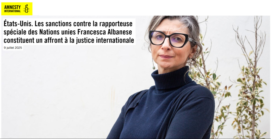 « Il s'agit d'une attaque éhontée et transparente contre les principes fondamentaux de la justice internationale » ( Agnès Callamard, secrétaire générale d'Amnesty International)«
