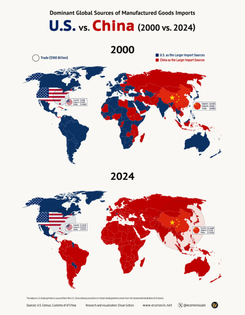 Comme le montre clairement le graphique ci-dessous, la dépendance à l'égard de la Chine ne se limite plus à l'Asie : à l'échelle mondiale, il est désormais difficile de faire fonctionner l'économie sans elle. La suprématie économique chinoise a atteint une dimension globale et exerce un puissant effet disciplinaire.