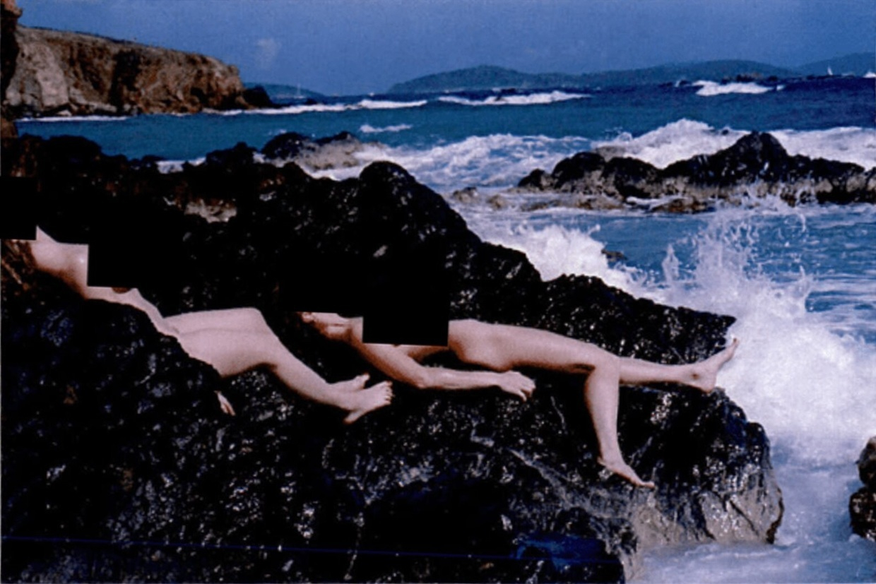 Cette photo montre Jeffrey Epstein avec une personne sur ses genoux, prise lors d'une perquisition à son domicile sur l'île Little Saint James, dans les îles Vierges américaines.
