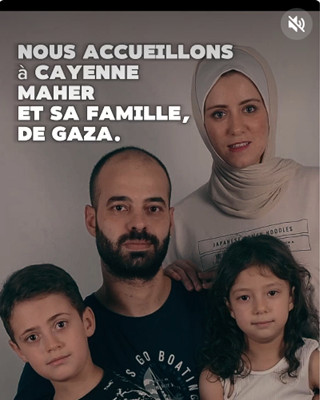 Free Palestine Guyane, 21 décembre 2025.- Maher, Rehab, Samia et Mohamed viennent d'arriver à Cayenne après un long périple. Ils ont quitté Gaza en avril 2024, ont tout perdu. La sœur de Maher a été tuée avec son mari et ses quatre enfants le 1er décembre 2023. A ce jour ils sont toujours sous les décombres.