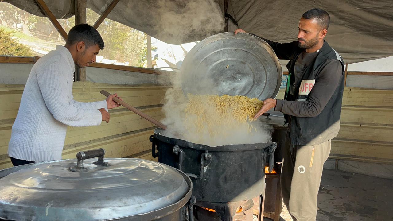 Avec l'UJFP, nous poursuivons notre engagement humanitaire envers notre peuple dans la bande de Gaza. Nos équipes sur le terrain mobilisent toutes les capacités et ressources disponibles, malgré leur rareté et la difficulté des conditions. Nos différentes équipes travaillent d'un même esprit, chacune dans son domaine de compétence, sans relâche ni recul, convaincues de l'importance du rôle qu'elles jouent à ce stade critique. Les centres de distribution de repas constituent l'une de nos principales formes d'intervention humanitaire : ils assurent quotidiennement l'approvisionnement alimentaire et la fourniture de repas chauds aux familles déplacées, ces repas jouant un rôle essentiel dans la protection des enfants contre la faim et la malnutrition. Ces efforts s'étendent des zones d'Al-Mawassi à Khan Younès jusqu'à Deir al-Balah, où des centaines de repas sont distribués chaque jour aux familles les plus démunies, dans le but d'éloigner le spectre de la faim des enfants et d'offrir aux familles un minimum de sécurité alimentaire.