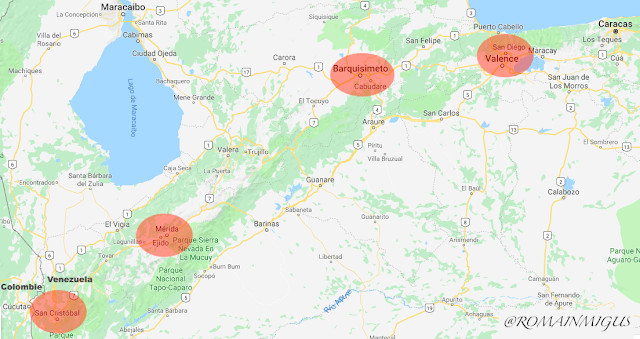 Localisation des guarimbas les plus violentes le long de l'axe andin-côtier
