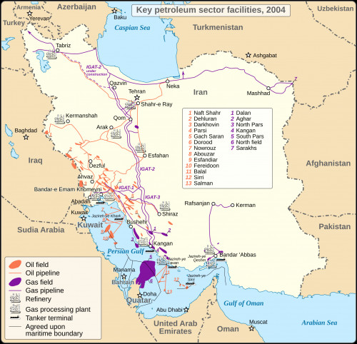 - Le pétrole/gaz (par exemple, le champ South Pars, les pipelines).