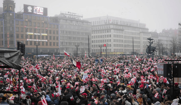 À Copenhague, capitale du Danemark, des manifestants se sont d'abord rassemblés devant l'hôtel de ville avant de marcher en direction de l'ambassade des États-Unis.
