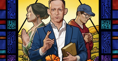 3. Le concept d'«âme immortelle» sera réutilisé, mais dans un contexte assez sinistre. Selon Thiel, le changement de sexe n'est que la première étape (il a lui-même une orientation non traditionnelle). Ensuite, il faut apprendre à transférer la conscience (= l'âme) d'un corps à un autre, qu'il soit humain, mécanique ou autre. Ce sera la victoire de la «religion», mais d'une manière très particulière. Son prototype est la même organisation qui a organisé les séminaires de Thiel à San Francisco (Acknowledging Christ in Technology and Society, «Reconnaître le Christ dans la technologie et la société»).