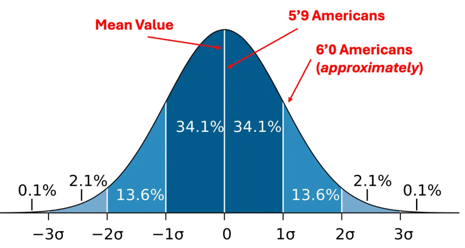 One of the fundamental principles in statistics is that variable phenomena tend to follow a bell curve distribution, with the average value (e.g., adult American men being 5'9-which is a bit above the global average) being by far the most common, while values become exponentially rarer as they move further away from that mean (e.g., only 15% of adult American men are at least six feet tall).