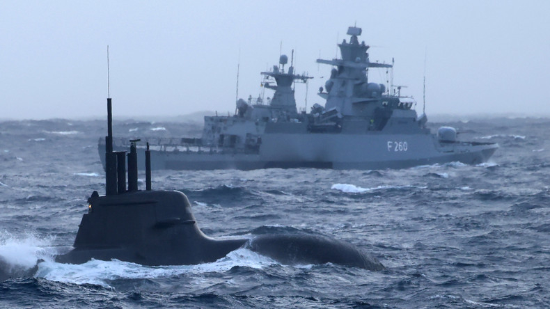 La corvette Braunschweig et un sous-marin de la marine allemande, au large des côtes norvégiennes, le 16 octobre 2025. [Photo d'illustration]
